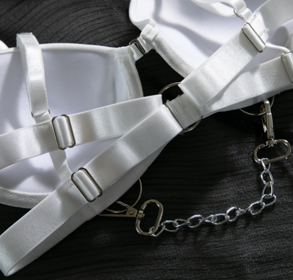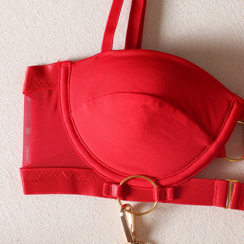 Sutiã push up com detalhe frontal metálico;